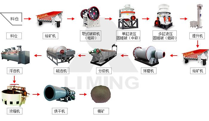 黎明重工30年致力于選礦工藝,為您提供專業(yè)的礦物加工解決方案與選礦設備。黎明重工選礦生產線由顎式破碎機、圓錐破碎機、球磨機、分級機、浮選機或磁選機、濃縮機和烘干機等主要設備組成,配合給礦機、提升機、傳送機可組成完整的選礦生產線。根據(jù)不同礦石的用途,配置相應專業(yè)的生產線方案。