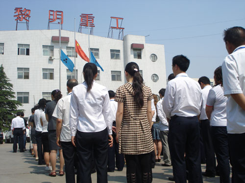 2008年5月19日下午2:28分,河南黎明路橋重工有限公司警笛長鳴,全體員工在莊嚴的國旗下為5.12地震中罹難的民眾默哀3分鐘,向死難者致敬。