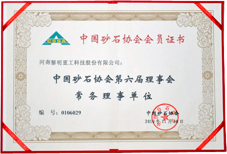 公司一直是中國砂石協(xié)會理事單位,眾多產(chǎn)品經(jīng)廣泛的市場應用,贏得了國內(nèi)外客戶的普遍贊譽,被中國砂石協(xié)會確定為推薦設備。本屆再次由新?lián)Q屆的中國砂石協(xié)會推薦為常務理事單位,表現(xiàn)了中國砂石協(xié)會對黎明重工科技產(chǎn)品質(zhì)量的充分認可。