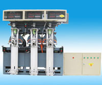 為了適應市場需求而研制、開發的專用于磨粉機粉體包裝的產品,本機特點為改變傳統的葉輪輸灰為螺旋灌裝輸灰,從而解決了葉輪輸灰射速高,使新國標塑編水泥袋因氣阻而裝灰不滿計量不穩的弊病。螺旋灌裝輸灰能持續平衡、快捷、無氣阻現象,且生產率高,所以新產品一上市即受到廣大水泥、粉體工業客戶的歡迎。該機使用空壓機、電磁閥和氣缸等氣動元件,通過機、電、氣實現包裝袋壓緊、松開、自動關閉出灰、袋滿掉袋等自動化功能。該包裝機的微機稱量系統是我公司技術人員針對螺旋式包裝機構水泥物料灌裝特點,精心設計開發的微機控制系統,計量精度高,穩定性好。包裝機設計有單嘴、雙嘴、三嘴、四嘴機型,可根據用戶需求進行改裝改良特殊形式的包裝機。