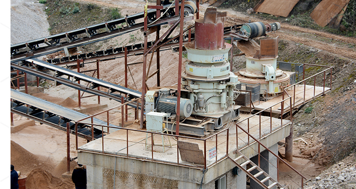 第二階段:中細碎輸送到反擊破/圓錐破中的玄武巖經過中細碎后,利用圓振篩進行篩分,較大顆粒物料返送到反擊破/圓錐破再次破碎。