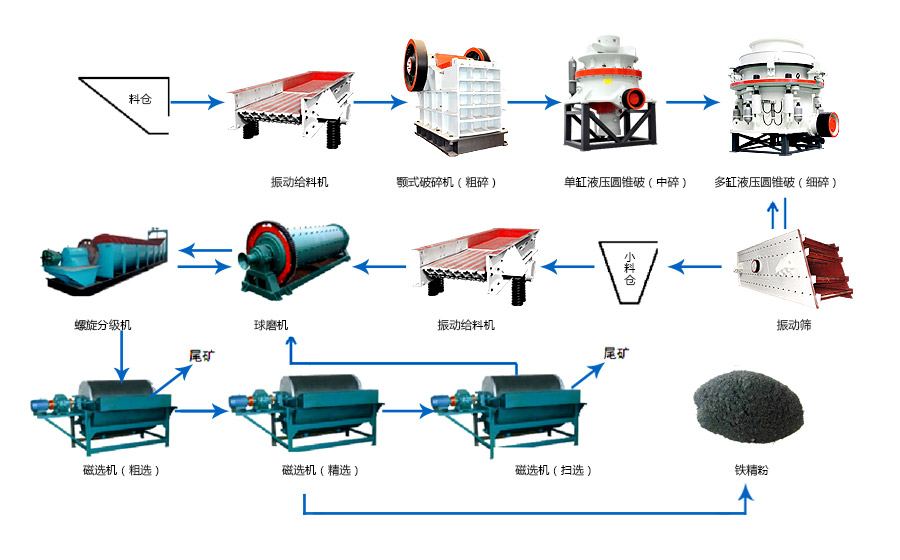 利于礦物富集:選礦廠處理的礦石大多數(shù)都是有用礦物和脈石礦物緊密連生在一起,且常常成細(xì)粒乃至為細(xì)粒嵌布。只有將它們粉碎,充分解離出來,才能用現(xiàn)有的物理選礦方法將它們富集。