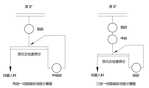 在具體破碎過程中,可以根據(jù)客戶對破碎比的不同要求,進(jìn)行相應(yīng)的破碎作業(yè)。根據(jù)不同的礦石性質(zhì)和使用破碎機(jī)的性能可以將總破碎比分成兩段或三段來實(shí)現(xiàn)。