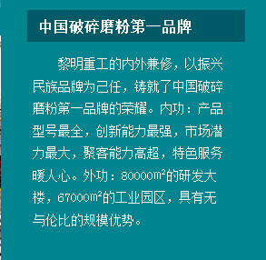 “粗中細(xì)超細(xì)碎的礦山破碎設(shè)備,在我們車間都能看到。”這就是黎明重工的霸氣!這樣豪情萬(wàn)丈的宣言源自26年孜孜不倦的探索與創(chuàng)新。高附加值、高技術(shù)含量、高利潤(rùn)的“三高”產(chǎn)品是黎明饋贈(zèng)給全球客戶的“禮物”。先導(dǎo)式的技術(shù)改造,前瞻性的技術(shù)創(chuàng)新,使黎明始終屹立于全球市場(chǎng)的前端。