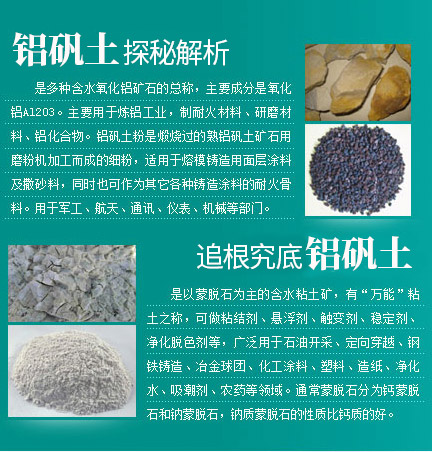 是多種含水氧化鋁礦石的總稱,主要成分是氧化鋁Al2O3。主要用于煉鋁工業,制耐火材料、研磨材料、鋁化合物。鋁礬土粉是煅燒過的熟鋁礬土礦石用磨粉機加工而成的細粉,適用于熔模鑄造用面層涂料及撒砂料,同時也可作為其它各種鑄造涂料的耐火骨料。用于軍工、航天、通訊、儀表、機械等部門。