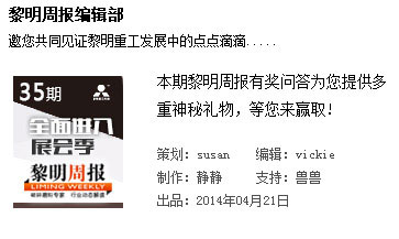2014年,黎明重工銷售狀況良好,第一季度大單子數量喜人,在特定行業又有突破性的進展。值得一提的是,剛剛過去的3月份,集團公司刷新了月銷售額新紀錄。借此銷售旺季的高峰,黎明重工的銷售精英們將攜戰略設備及新研究成果奔赴廣州(中國)、奇瓦瓦(墨西哥)、圣地亞哥(智利)、烏蘭巴托(蒙古)、莫斯科(俄羅斯)等地參展盛會,實現企業與采購商之間產品和信息的主動推送。相信黎明重工重磅推出的輪胎移動破碎站、MTW歐版磨粉機、HPT液壓圓錐破、VSI5X新型制砂機等多款產品,必將為參展嘉賓們帶來非凡體驗。