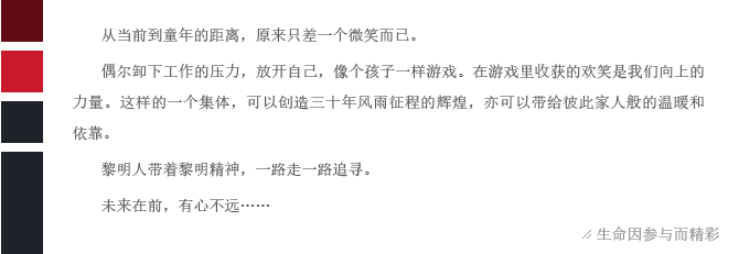看起來些許幼稚的游戲卻讓一群人脫下工裝,如孩童般歡呼跳躍。和有趣的人一起做有趣的事,快樂從未這樣簡單過。