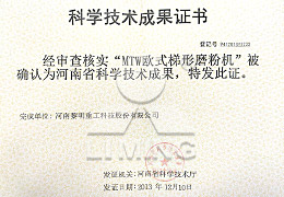 河南省科學技術成果獎(具有隔振結構的懸輥磨粉機)
