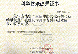河南省科學技術成果獎(立軸沖擊式破碎機傳動軸承裝置)
