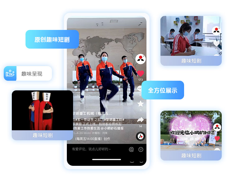 緊扣傳播趨勢和網絡發展動向,黎明重工以抖音平臺、微信視頻號等為側重,策劃創作趣味原創劇本,以影音方式讓黎明的品牌形象更加鮮活,讓知識變得有趣且有溫情,全方位展示黎明產品的特性與優勢,使受眾能更加直觀地了解黎明的產品與品牌。